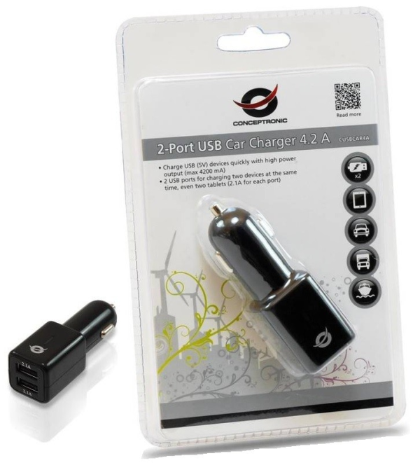 Carregador Universal Isqueiro 12/24V 2x USB 4,2A (Preto) – CONCEPTRONIC